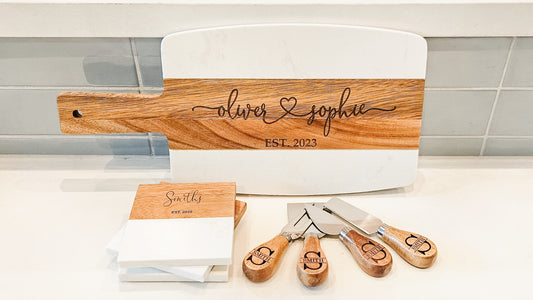 Personalized Marble & Acacia Wood Coasters