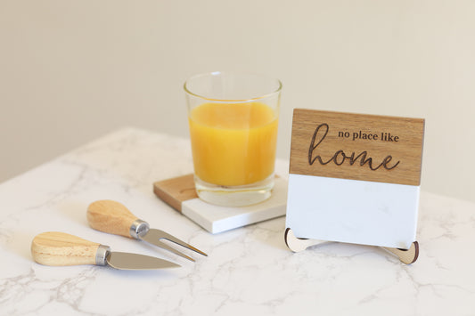 Coasters - Marble and Acacia Wood - Assorted Phrases
