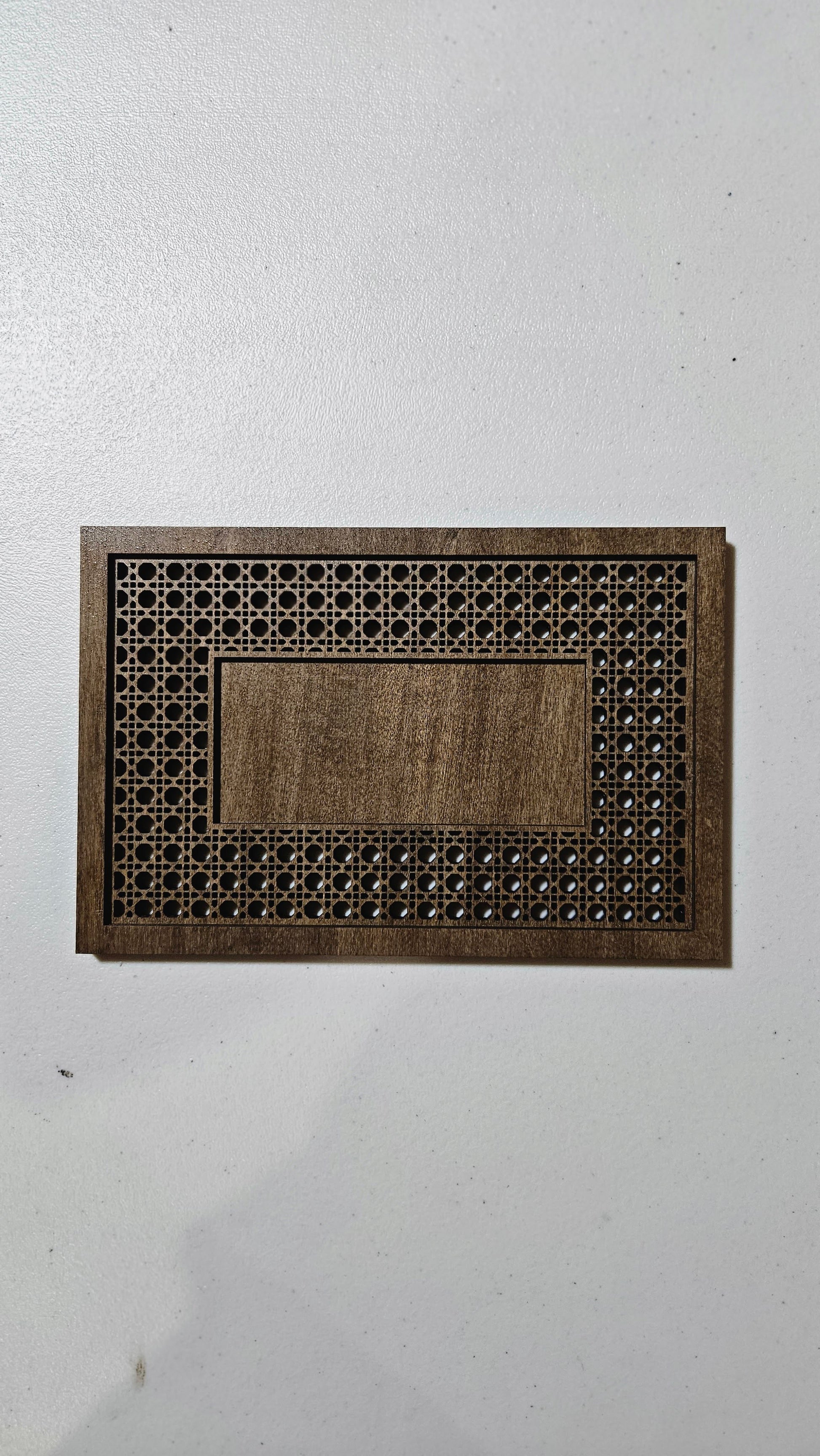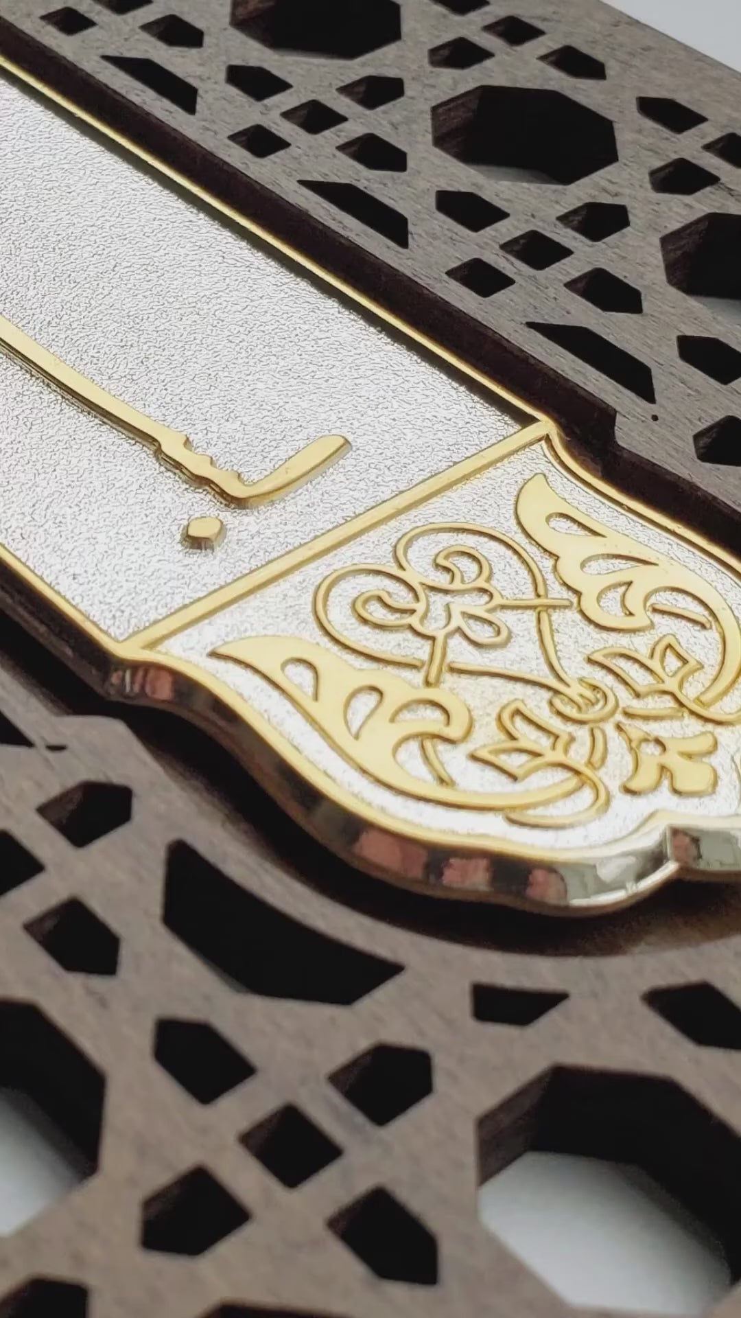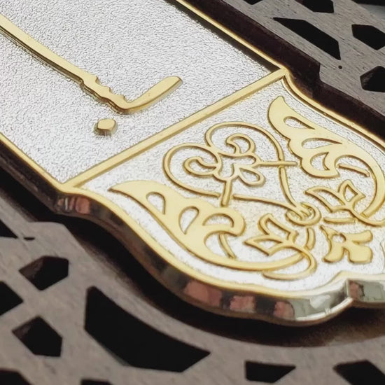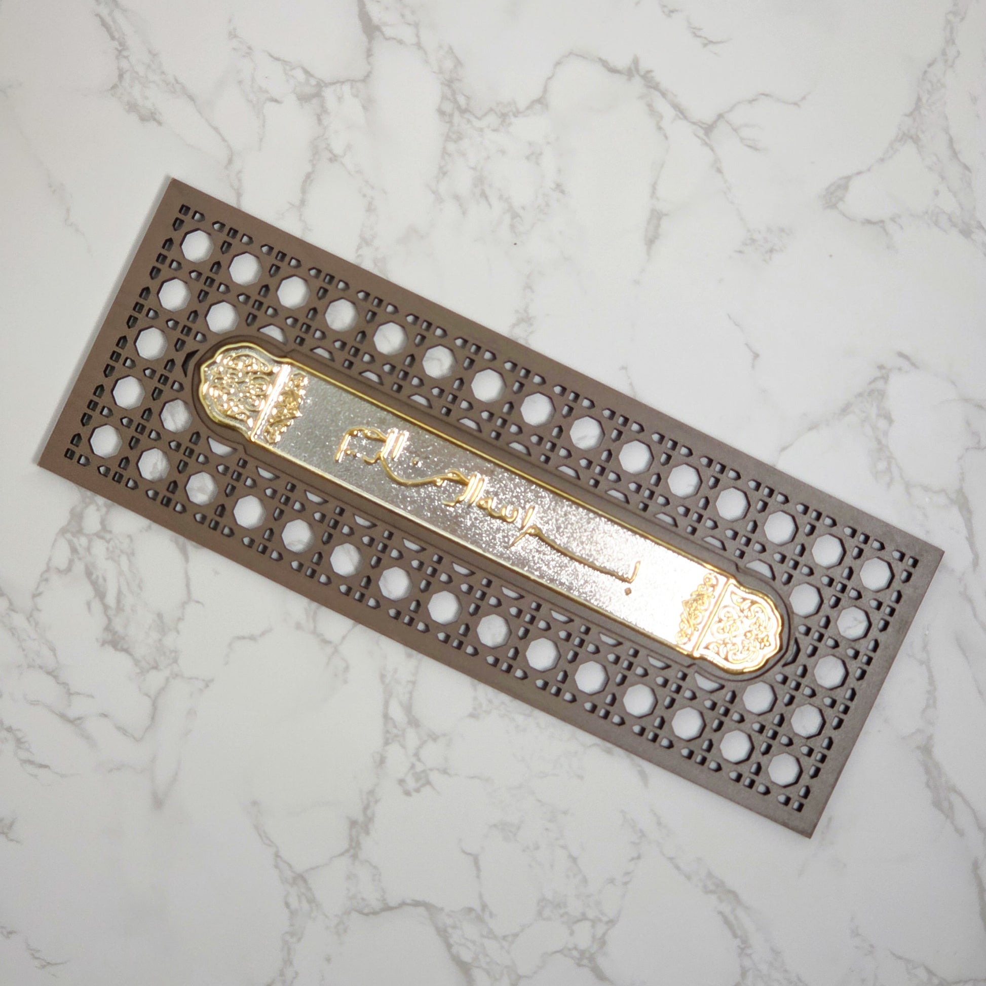 Double layered, patterned, wood stained frame for Bismillah takhti.
